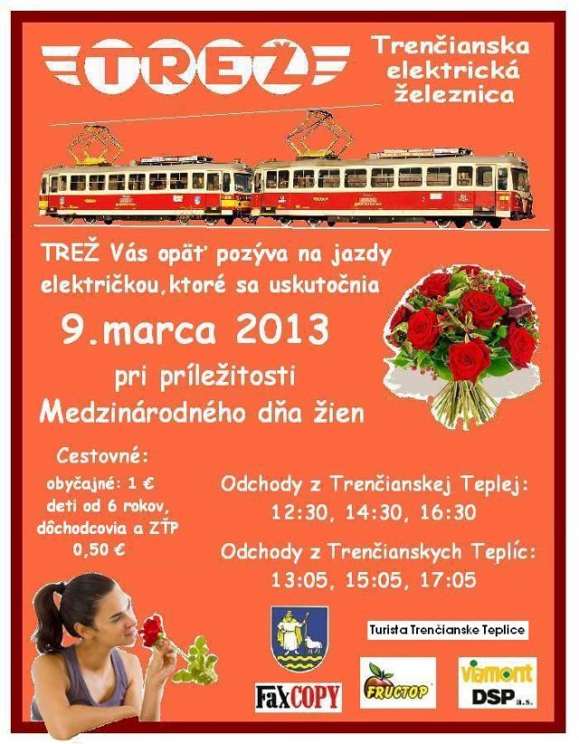 Trenčianska elektrická železnica Vás pozýva na jazdy električkou 9. marca 2013 pri príležitosti Medzinárodného dňa žien.