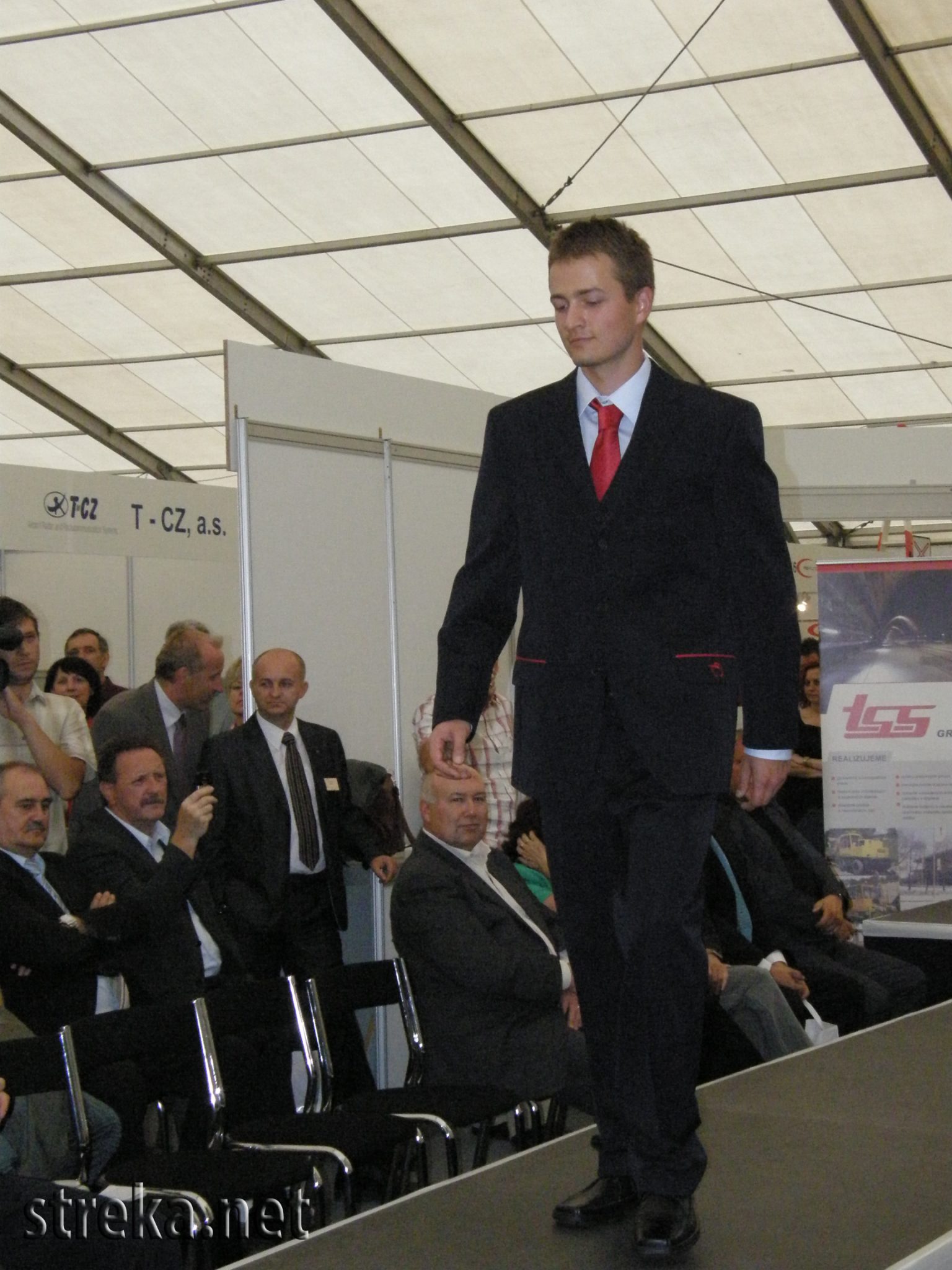 Samozrejme jednotlivé modely teraz budú ešte pripomienkované a budú doladené detaily, už počas samotnej prehliadky a bezprostredne po nej prítomní zamestnanci komentovali a pripomienkovali niektoré veci buď priamo autorke, alebo p. Tarcalovi. Ako sme spomínali už v inom článku, po skončení prehliadky bol generálny riaditeľ ZSSK a.s. Pavol Kravec, ktorý sa osobne zúčastnil aj napriek tomu že má ešte stále nohu v sádre, odmenený zlatou medailou výstavy, za inovatívny prístup v železničnej doprave, práve vďaka týmto novým a moderným uniformám. Všetkým sa veľmi poďakoval a sám žartoval, že on prišiel prezentovať nový model unifromy pre generálneho riaditeľa, ktorý pozostáva z bielej košele, modrých želežničiarských nohavíc a to všetko doplnené bielou sadrou a invalidným vozíkom.